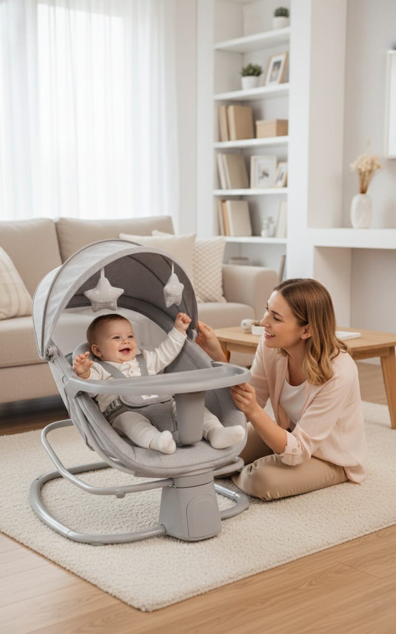 ✅ ৪-ইন-১ মাল্টিটাস্কিং: দোলনা, বাউন্সার, রকার এবং ফিডিং চেয়ার হিসেবে ব্যবহার্য। ✅ স্মার্ট কন্ট্রোল: ব্লুটুথ কানেক্টিভিটি, USB ও রিমোট কন্ট্রোল সুবিধা। ✅ সর্বোচ্চ সুরক্ষা: শিশুর মেরুদণ্ড সুরক্ষায় বিশেষ প্যানেল ও ৫-পয়েন্ট সেফটি বেল্ট। ✅ অটো টাইমার: বাচ্চার ঘুমের জন্য ১৫, ৩০ ও ৪৫ মিনিটের টাইমার সেটআপ। ✅ ৫টি সুইং স্পিড: বাচ্চার মুড অনুযায়ী দোলনার গতি কমানো বা বাড়ানো যায়।