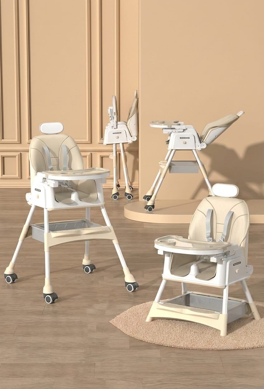 4-in-1 Baby Feeding High Chair [ ক্রিম সাদা কালার ]